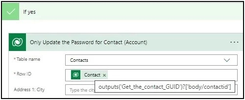 With this in mind, Utilize actions within the child flow to fetch the GUID (Globally Unique Identifier) of the contact associated with the password reset request. This step ensures precise identification of the user requesting the password reset, facilitating targeted actions and communication.