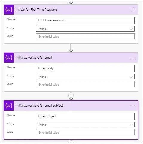 Moreover, variables play a pivotal role in storing and manipulating data within the child flow. Then, Initialize the following variables to facilitate password generation, email composition, and communication:
